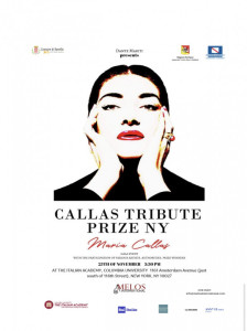 un evento presso la prestigiosa Italian Academy della Columbia University di New York il 25 Novembre alle 6 p.m. che costituirà un omaggio speciale alla Callas: musica, teatro, moda e premiazioni destinate alle donne che si sono distinte in diversi settori come sociale, arte e naturalmente la musica.