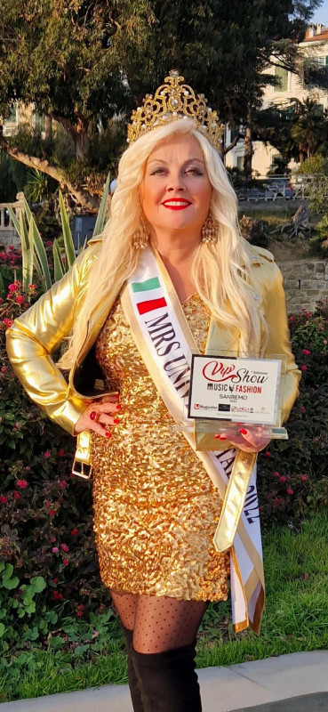 Paola Grossi Mrs Universe Italy 2022 e' stata premiata durante la settimana del festival di Sanremo in uno degli eventi collaterali al festival